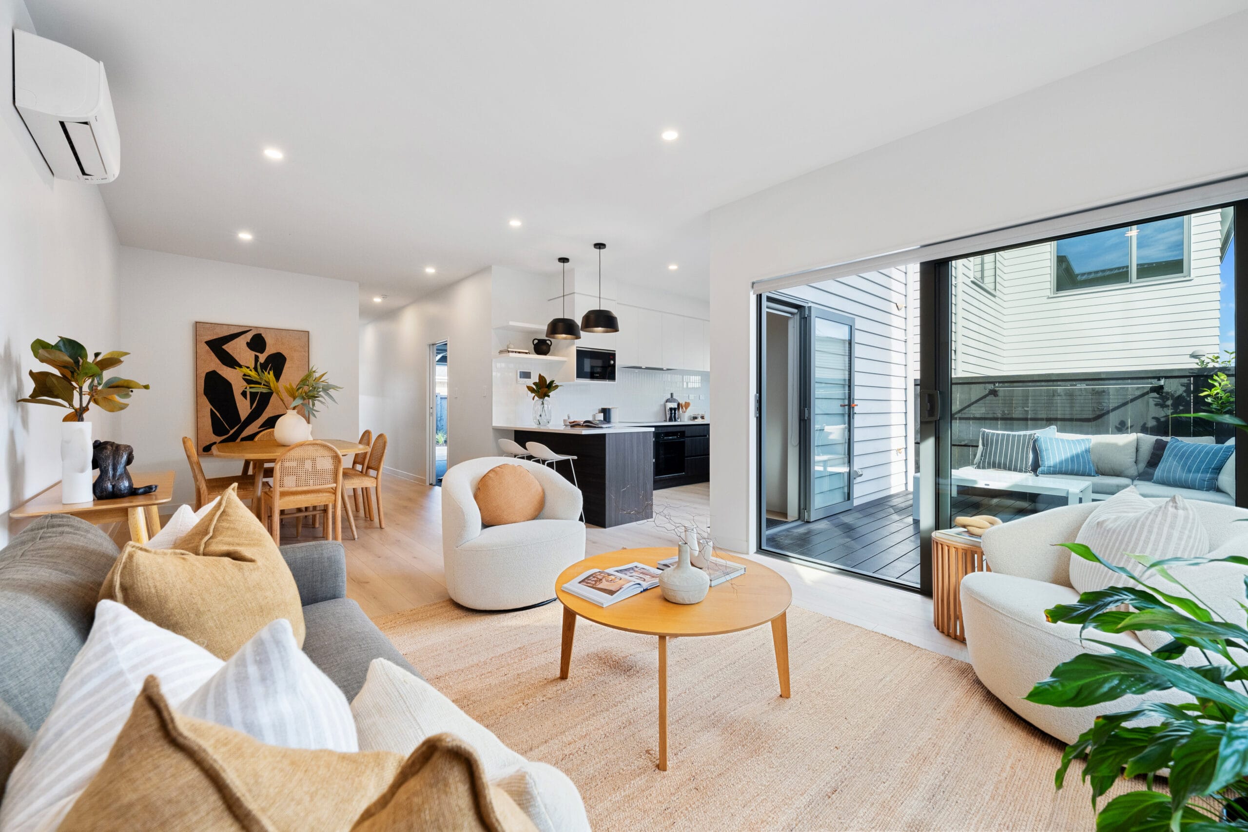 Efficient Climate Control: A heat pump installed in the living and dining areas provides both cooling and heating, ensuring a comfortable living environment year-round.